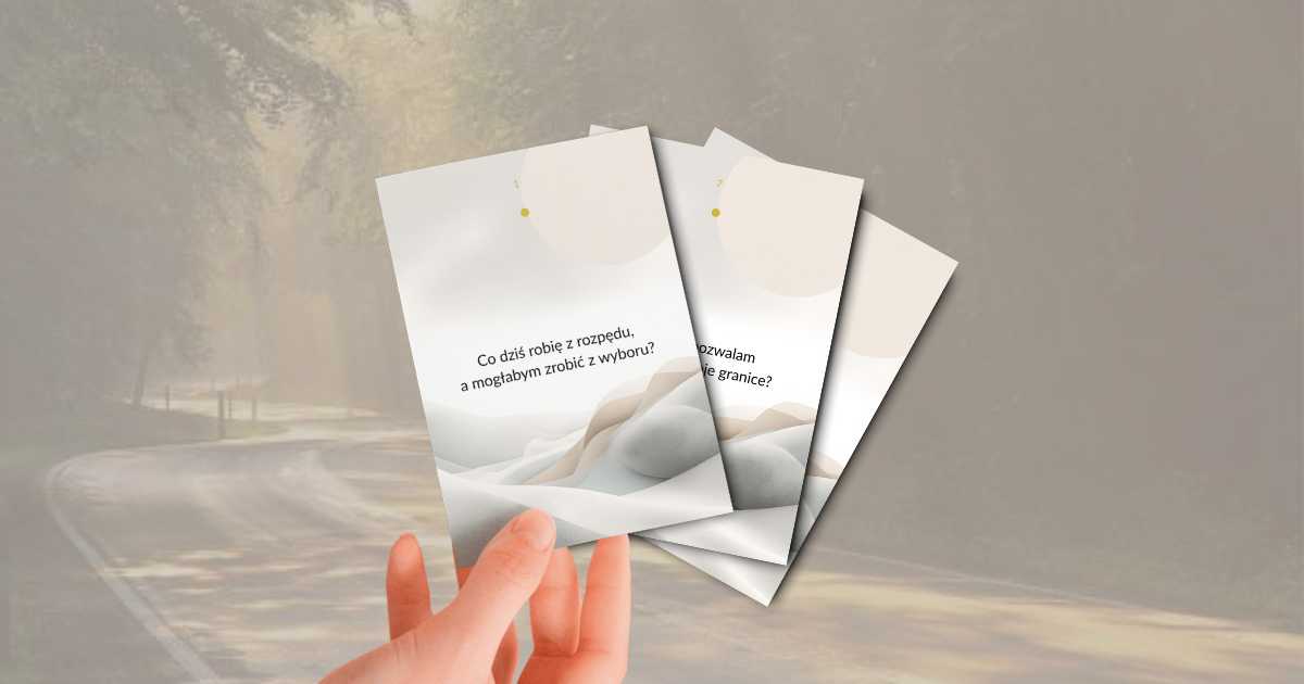 Nie są motywacyjnymi cytatami, tylko konkretnymi pytaniami, decyzjami i mikropraktykami, które pomagają zobaczyć, co robisz z rozpędu i wybrać inaczej.